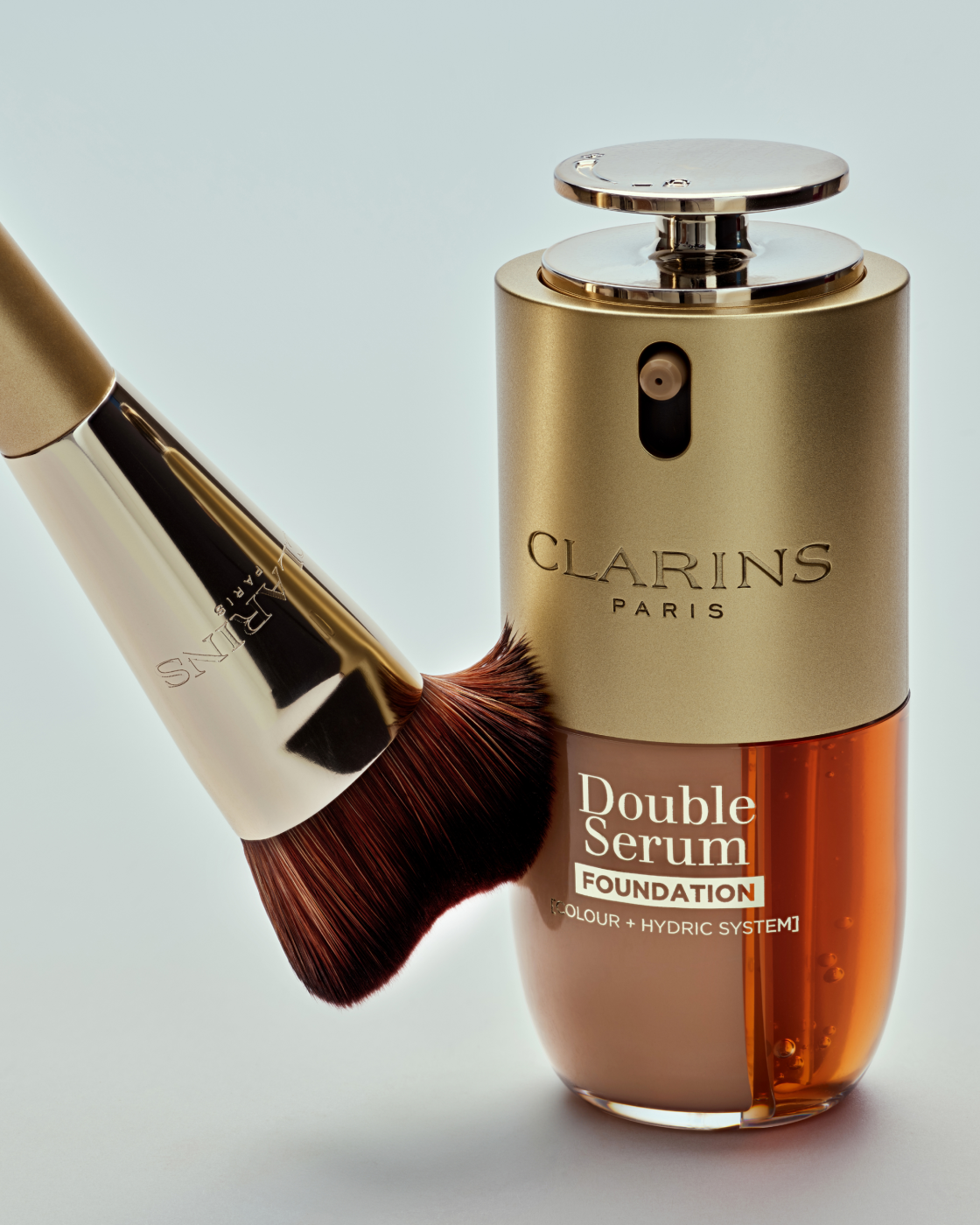 Double Serum Foundation od Clarins je revoluční hybridní sérum makeup s dvoufázovým složením. Jedná se o dokonalé spojení líčení a péče o pleť. Obsahuje kyselinu hyaluronovou, peptidy a extrakt z papáji, který pomáhá jemně vyhlazovat texturu pleti. Díky nastavitelnému dávkovači poskytuje lehkost, přizpůsobitelné krytí od středního po plné, se saténovým a nemastným finišem. Technologie odrážející světlo navíc dodává pleti přirozený jas a zářivost.