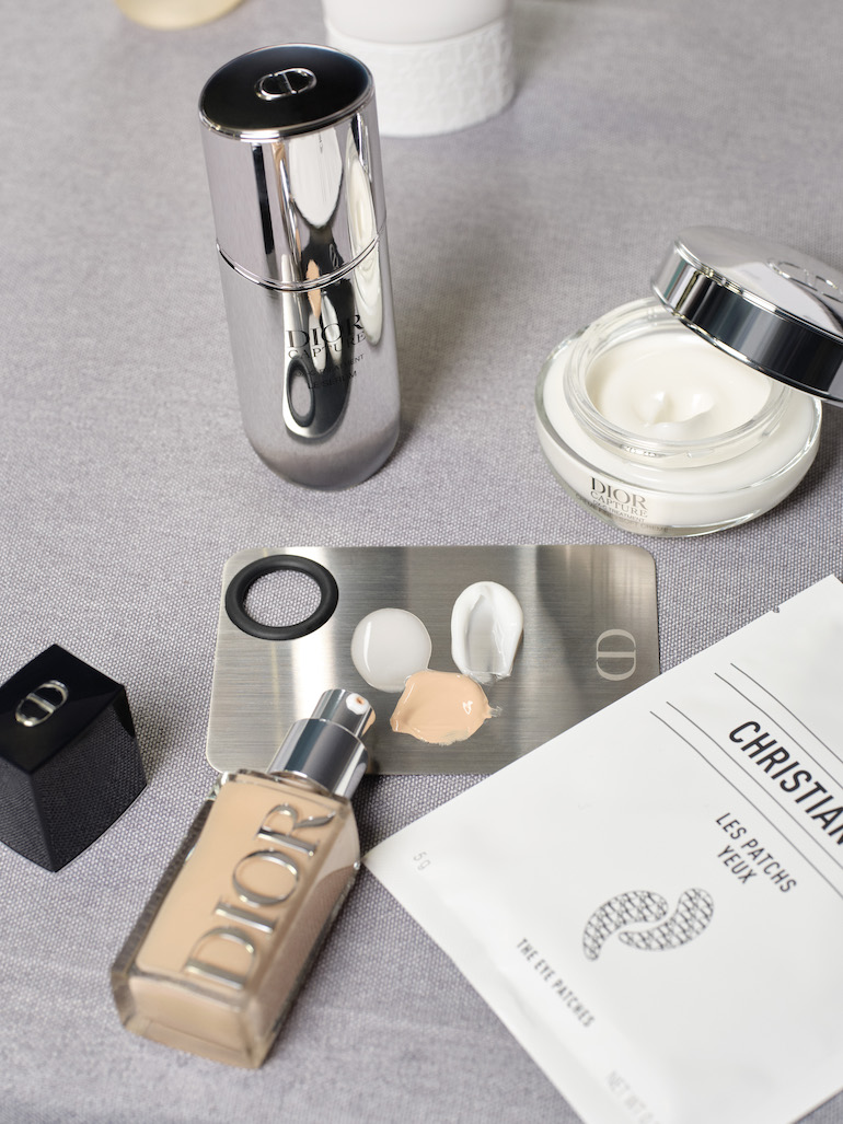 Pleť byla nejprve jemně vyčištěna pěnou La Mousse OFF/ON, následně hydratována pomocí očních polštářků a séra z řady Capture. Teprve poté přišla na řadu lehká vrstva make-upu Forever Skin Glow, která sjednotí tón pleti, ale stále nechává zazářit přirozenou strukturu pokožky. Výsledkem je zářivý, přirozený finish, který působí zdravě a nenuceně.